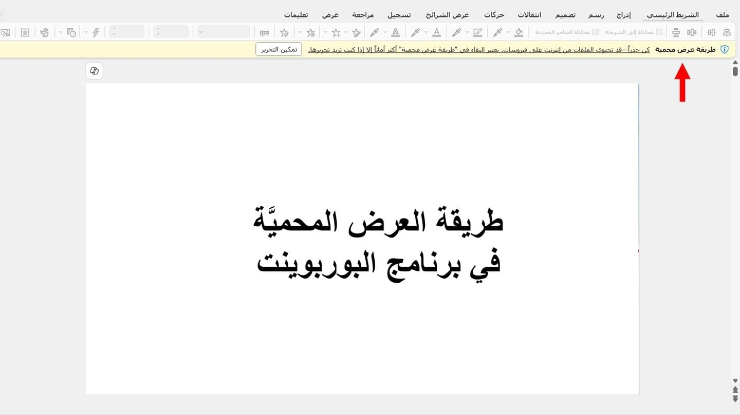⚠️ أهمية خاصية "طريقة العرض المحمية" في برنامج البوربوينت للحماية من مخاطر الملفات المحملة من الإنترنت